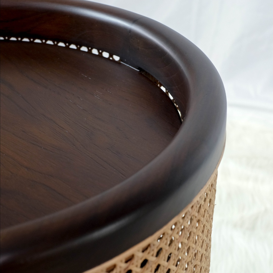 The Tula Side Table – a round masterpiece that blends authenticity and functionality. Encased in rattan and framed with wood, this unique piece exudes a natural charm that’s timeless and modern. Despite its three legs, stability is unwavering, providing a secure surface to showcase your favorite items next to your sofa or bed.
